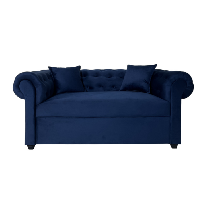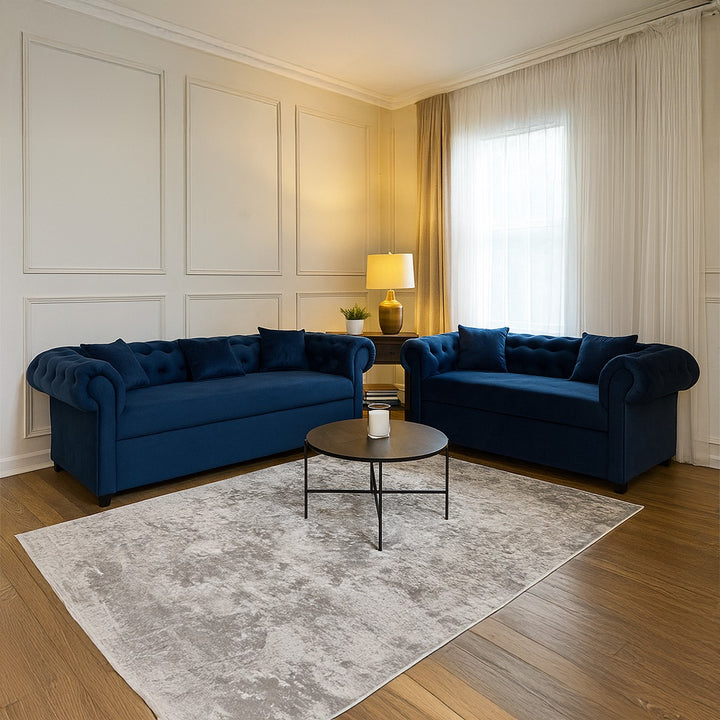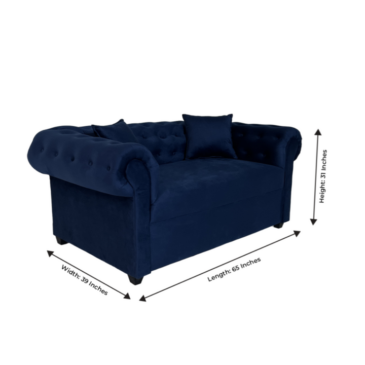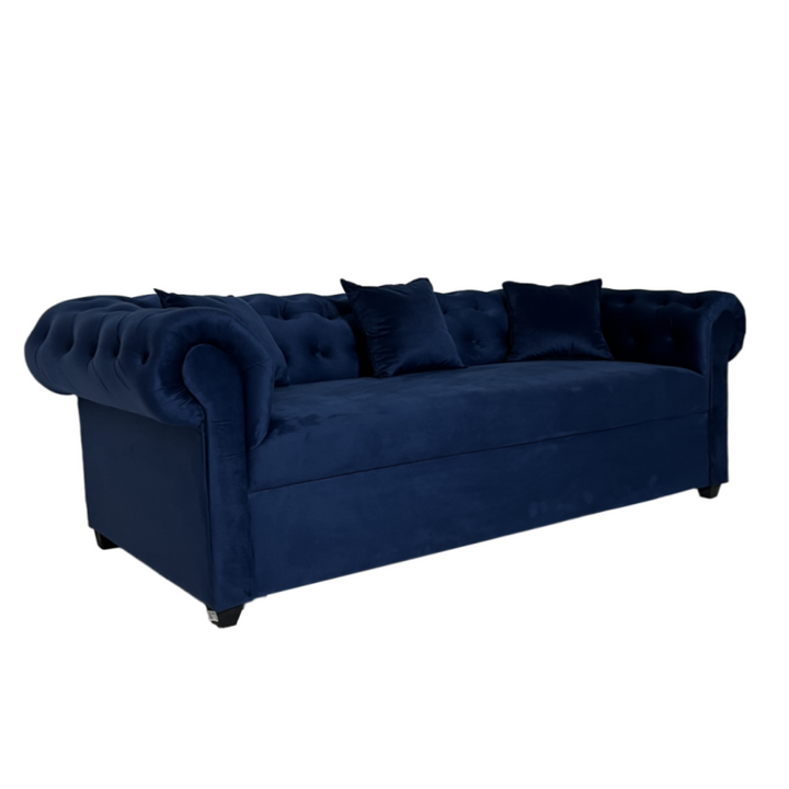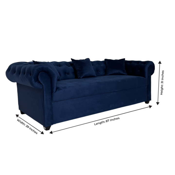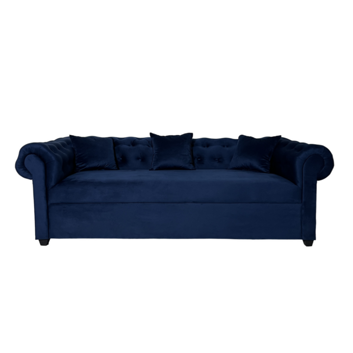 Big on comfort, bold in style. The Indie 5-seater sofa in bangalore in dark blue velvet is made for homes that love to host. With its plush velvet finish, deep seating, and classic tufted backrest, this sofa brings a rich, cozy vibe to any living room. Shop Now!